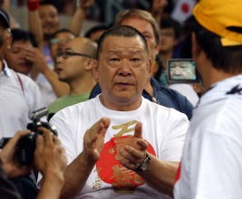 「完全燃焼」と言ったのは、「北京オリンピックでは」という意味であり、闘争心はまだ燃え尽きてはいなかった。家族は「ロンドン五輪も行けるよ」と言ってくれるそうだが、自身はすぐに2012年ロンドン五輪を目指すということではなく、「出られる大会をひとつひとつ出て」と強調した(左写真=観客席からまな娘に声援をおくるアニマル浜口氏)。