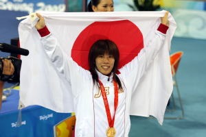 女子が始まった8月16日、「これぞレスリング」という見事なフォール勝ちで55kg級の吉田沙保里(ALSOK綜合警備保障)がオリンピック2連覇を決めた(左写真)。試合会場の中国農業大学体育館には、初日に出陣する吉田と48kg級の伊調千春(ALSOK綜合警備保障)を応援しようと大勢の日本人が駆け付けた。その中には、もちろん家族の姿も。1つまた1つと白星を重ねていく度に会場で日の丸が揺れた。