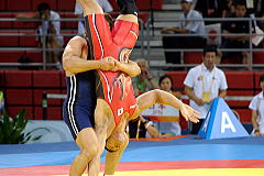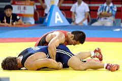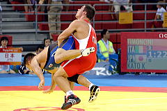北京オリンピックのレスリング競技第3日は8月14日、中国農業大学体育館で男子グレコローマン3階級が行われ、84kg級の松本慎吾(一宮運輸)、96kg級の加藤賢三(自衛隊)ともに初戦で敗れ、敗者復活戦に回ることなく五輪を終えた。