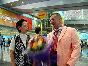 前日北京入りした娘・京子に続いて、8月12日、アニマル浜口夫妻が北京の地に降り立った(右写真)。