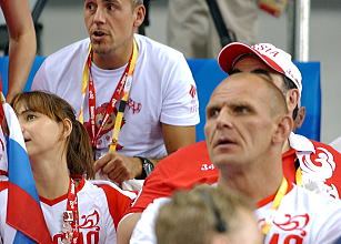 8月12日に行われた北京オリンピックのレスリング競技第1日・男子グレコローマン2階級は、55・60kg級ともにロシアとアゼルバイジャンの決勝となり、ロシアが2階級とも優勝した(右写真=ロシア選手を応援する五輪V3のアレクサンダー・カレリン=ロシア)。