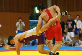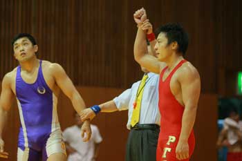 【男子フリー74kg級優勝】 小原康司(赤=自衛隊) |