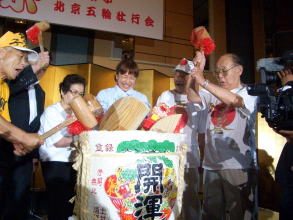 北京五輪の女子72kg級に出場する浜口京子選手(ジャパンビバレッジ)の壮行会「京子祭」が7月6日、東京・浅草ビューホテルで行われ、国内外を問わずに応援に駆けつける浅草応援団を筆頭に約300人のサポーターが集まり、浜口選手の2度目の五輪出場と金メダル獲得を激励した(右写真)。