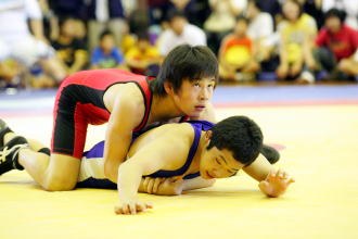 昨年の53kg級の覇者、高橋侑希(三重・正和)が、同じ53kg級で6試合に快勝して2連覇を達成。沼尻直杯(最優秀選手賞)を獲得した(右写真は決勝=赤が高橋)。