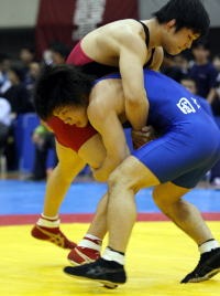 フリースタイル60kg級で2006年世界3位で、北京オリンピック代表候補の高塚紀行(日大コーチ)に昨年、公式戦で2連勝するなどルーキーとして大暴れした小田裕之(国士大2年=左写真)。今シーズンもその勢いは止まらな さそうだ。今回のJOC杯ジュニアオリンピックは66kg級に出場し、5kgほどのハンデを背負いながら危なげなく67選手参加のトーナメントを制した。