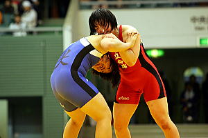 第1ピリオドは田中がテークダウンを奪って1ポイント奪取。終盤にも加点し、2−0で取った。第2ピリオドは第1ピリオド同様、両者が組み合うものの、タックルに入れない。こういう勝負になると、ミスを犯した者が不利を強いられる。田中が不用意なタックルをつぶされて1ポイントを奪うと、第3ピリオドも鈴木がバックに回って、1ポイント。さらにタックルをつぶしてポイントを重ね、2−0でこのピリオドも制し、初優勝を飾った。