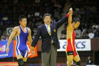 男子フリースタイル55kg級は、昨年王者で今年の世界選手権代表の湯元進一(自衛隊)が高校3年生の森下史崇(茨城・霞ヶ浦高)に2回戦で敗れる波乱の展開。その森下を準決勝で破った稲葉泰弘(警視庁)が、決勝戦で新潟国体優勝の田岡秀規(自衛隊)を下して大会初優勝を飾った。