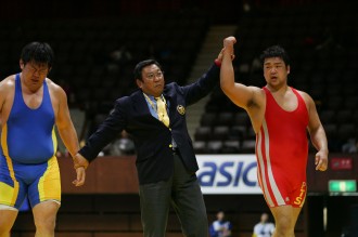 2004年の男子グレコローマン120kg級で初優勝した新庄寛和(自衛隊)が、07年と合わせて三度目の王者にがついた。