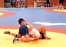 一方で、北京五輪フリースタイル60kg級で銅メダルを取った湯元健一(ALSOK綜合警備保障)が、北京五輪前以来、約1年3ヶ月ぶりに全日本合宿に参加した。「この場所でやることに、やはり緊張します。強い選手が集まる場所なので」と話しつつも、本来の場所に戻ってきて気持ちよさそう。しかし、石田智嗣(早大)とのスパーリングでは見合ってしまって技が出ず、佐藤強化委員長から「見合ってばかりいてどうする。攻めろ」とゲキをとばされるなどした。