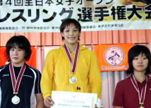 決勝戦の相手は今年のアジア・ジュニア・チャンピオンの立光詩織(王子自動車学校)。伸び盛りの立光の片足タックルで1ポイント先制されたものの、グラウンドでバックに回って同点にすると、ニアフォールへ。3−1で第1ピリオドを制した。第2ピリオドもバックに回って1ポイント。ニアフォールで2ポイントを加え、胴タックルからのテークダウンで1ポイント加えて4−0で制し、優勝を飾った。