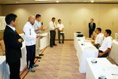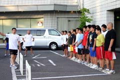 | 渕ノ上文也団長あいさつ | コーチ陣のあいさつ | 結団式後の練習 | 日本選抜チーム |