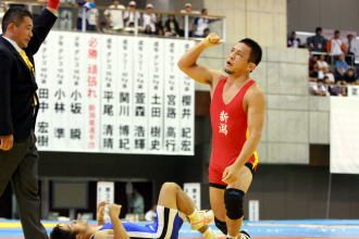 成年チームのエース、2007年フリースタイル74kg級世界選手権代表の萱森浩輝(新潟県央工高教)は惜しくも準優勝。優勝の期待は、グレコローマン55kg級の平尾清晴(新潟・新潟県協会)に注がれた。