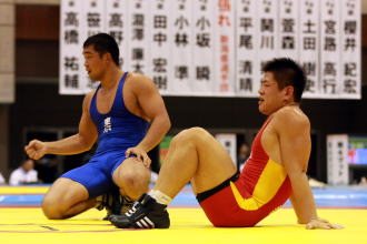決勝戦の相手の鈴木崇之(東京・警視庁)は、北京五輪前までは66kg級だった選手。2007年はともに世界選手権に出場した仲間だった。階級アップから1年が経ち、74kg級にふさわしいボディを手に入れた鈴木は、動きも良く、フルピリオドで勝ち上がった萱森とは対照的に全試合をストレートかフォールで勝ち進んできた。