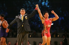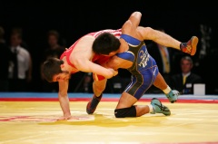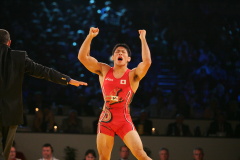 《試合経過》第1ピリオドの1分すぎ、米満が右脚を取られるが、うまい身のこなしで逆にバックを取って1点を奪取。そのままのスコアでこのピリオドを取った。第2ピリオドは開始から米満が攻め、相手の右脚を取ってテークダウン。レッグホールドで1点を加える。さらに右足への片足タックル。38秒で3−0としたあと、1分17秒にも片足タックルで4−0。余裕をもって終盤の相手の反撃をしのぎ、試合を決めた。