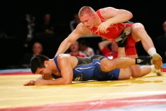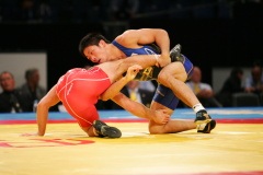 《試合経過》第1ピリオド、お互いにポイントが取れなかったが、1分30秒ころ、米満が相手の右脚へタックル。タックル返しを必死にこらえて相手の背中をマットに向けて2点。2−0でlこのピリオドを先制。第2ピリオドは36秒に米満が片足タックルから両足タックルにつなげて1点を先取。終了間際、相手はがぶってがぶり返しを仕掛けたが、米満がかわしてバックを取り、2−0として勝った。