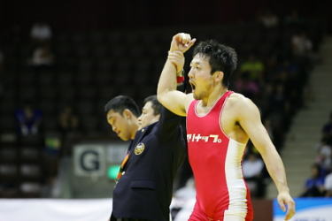男子の世界選手権代表を決める明治乳業杯全日本選抜選手権は6月20日、東京・代々木競技場第二体育館で開幕。各スタイル4階級ずつが行われ、フリースタイル74kg級では昨年を含めて全日本選手権に3度優勝しながら、世界選手権の出場がなかった長島和幸(クリナップ)が初優勝(右写真)。初の世界選手権出場を決めた。