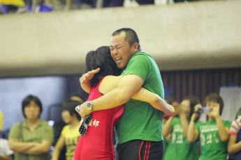決勝戦では古市雅子(東京・稲付)に何もさせずにフォール勝ち。古市は柔道出身でレスリング歴はわずか1年2ヶ月の新人選手だが、JOCの管轄でエリート教育を受けている選手。そんな古市をズバッとフォールで下したことは、鈴木にとってうれしかったに違いない。優勝を決めると、今村直樹監督に駆け寄って涙を流しながら抱きついた(右写真)。