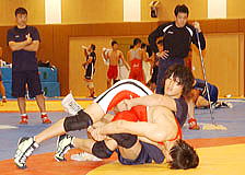 世界選手権代表選考を兼ねた明治乳業杯全日本選抜選手権(6月20〜21日、東京・代々木第二体育館)前の最後の全日本合宿になる。佐藤強化委員長は「お互いの闘いの中で課題を見つけ、残る3週間で克服して勝負に臨んでほしい」と話したが、「国内で勝つための練習ではダメ。攻めて攻めて、世界で勝つ実力を身につけることを念頭においてほしい」とも加えた。