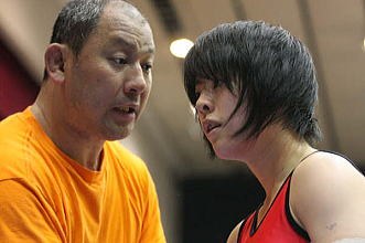 「東京だったら、最高の環境で試合ができる」と田中は五輪招致に大賛成だ。冬のスウェーデン遠征では食べ物や環境の違いに少々手こずり、異国での調整の難しさを痛感した。それだけに「東京でオリンピックをやってほしい」と切望する(右写真=埼玉栄・野口篤史監督と田中)。