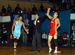 1990年中盤まで県内でレスリング部のある高校が1校もなく、“レスリング後進県”と言われた愛媛県から、八幡浜工が風間杯全国高校選抜大会の団体戦で3位に入賞。個人戦でも2人が決勝進出を果たし、60kg級の近藤達矢が優勝する殊勲を挙げた。八幡浜工の栗本秀樹監督(左写真)は「11年かかりました。今治工で7年、八幡浜工で4年。やっといい思いができました」と、声を張り上げすぎた影響でガラガラになった声で喜びを表す。