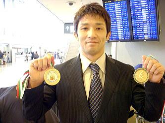 2012年ロンドン五輪へ向けてのエースとなるべく頭角を現したのが、55s級の長谷川(右写真)だ。2大会連続で金メダルを獲得。笑顔でがい旋帰国した。昨年もアジア選手権で3位となったが、その後の五輪予選ではグラウンドの投げを食らって初戦敗退。今回は得意のスタンドで優位に進めたのが勝因につながった。課題だったグラウンドのディフェンスも克服し、グラウンドの失点は「ハンガリー・グランプリ」の準決勝の1試合のみ。あとは無失点に抑えた。