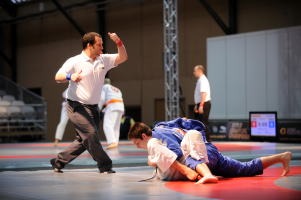 28日の委員会出席が鎌賀氏の“FILA委員デビュー”。アジア地区代表の委員として、グラップリングの普及発展への手腕が期待される(左写真=昨年12月の第1界世界グラップリング選手のもよう、鎌賀氏撮影)。