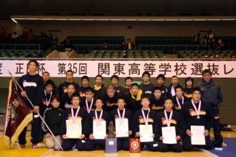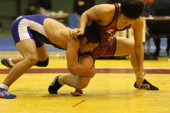 1月31日〜2月1日に東京・駒沢体育館で行われた関東高校選抜選手権大会。学校対抗戦は霞ヶ浦(茨城)が2年ぶり24度目の優勝を果たし、個人戦でも5階級を制覇。高校レスリング界に不滅の金字塔を打ち立てた強豪が完全復活を遂げた(右写真)。