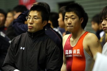 都立高校にレスリング部が復活した。1月31日〜2月1日に東京・駒沢体育館で行われた関東高校選抜選手権大会のフリースタイル66s級に、創部1年目の都立葛飾商高の富岳祐太選手がマットに立った。セコンドには同好会時代の2006年から指揮をとる本田貴臣監督(右写真:本田監督=左=と富岳選手)。