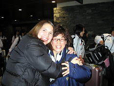 | カルガリーに到着した日本ジュニア選抜チーム。 | 再会を喜ぶ吉村祥子コーチと世界V6のクルスティン・ノードハーゲン。 | カルガリー大学の選手と練習した日本チーム。 | 北京五輪金メダリストのキャロル・ヒュンも練習に参加。 |