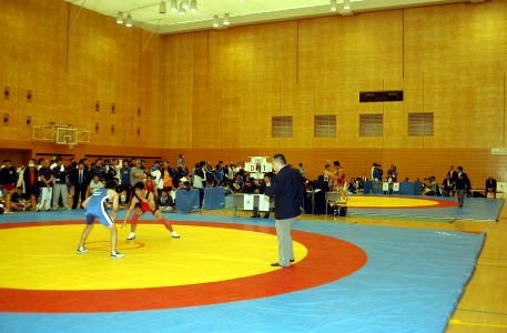 | 2面マットで熱戦を展開。 | A60kg級優勝、日体大で活躍した関川博紀さん。今秋の新潟国体にも出場か? | A66kg級優勝、山梨学院大〜自衛隊で活躍した勝目力也さん。現在は横浜修悠館高のコーチ。 | A74kg級決勝は小柴健二さん(青)と天谷満博さんの高校監督対戦で、小柴さんが勝つ。 |