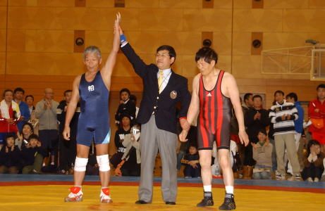 今年から女子の部が行われ、太田章レスリングクラブの2選手が参加。全日本選手権にも出場したことのある西村優美さんと、64歳にして出場した山田純子さんが対戦したが、年齢差がありすぎるため、特別措置でともに1位と認定された。