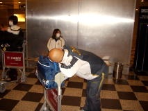 女子チームのフライトと同じオランダ航空でデンマークに向けて出発します。リムジンバスで集合時間の朝9時の20分くらい前に成田空港に到着。バスの窓から自衛隊の面々の姿を見かける。しかし、集合場所である北ウイングのCとDのカウンターにはなかなか現れず。まだ時間があるので、買い物でもしているのかな、と思っていたが、それでもなかなか現れない。