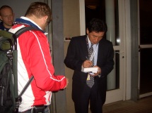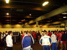 さて、熱狂的なフィーバーの中、全試合終わりました。ビル・メイさんは明日、約800kmを運転してプラハに帰ります。睡眠不足は運転の大敵なので、今夜は早くに就寝。プレスセンターでお別れです。その後、11時半にいつものあんちゃんが来て、「クロース。こっち(いつもの出口方面)は鍵がかかているから、こっちから出てくれ」とのこと。キャッシュデスペンサーでお金を下ろそうと思っていたので、困ったと思ったら、保高記者がその旨を説明してくれた。