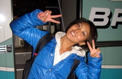 アムステルダム空港で約4時間の待ち時間。とにかく広い空港。降りたゲートから次に乗るゲートまで、延々20分も歩く。途中、吉田沙保里選手を見つけて記念撮影を頼んでくる日本人あり。やっぱり人気者−。飛行機の中でも、隣に座った人が「あの人、吉田選手ですよね。意外に小さくてキュートなんですね」って言ってきたし、スチュワーデス(今はこういう言い方せず、キャビンアテンダントというのが普通らしい)も降り際に「吉田選手、かわいいですねー」って言ってきたよ。