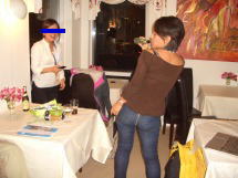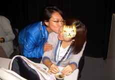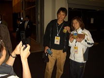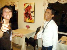 中村記者を含めて3人でその場所へ。スーリアンも、日本女性からも人気があると知って悪い気はしないのだろう、いろんな記念写真に応じてくれた。「オレがツマミを取りに行かせたからぞ。感謝しろよ」と言うと、「はい、ありあがとうございます」と涙ながらに答え、三つ指をついて感謝きてきた(オーバー!)。この記者でも、こんな殊勝な気持ちで他人に感謝することがあるのだと初めて知りました^^