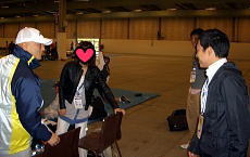 | 39歳で世界選手権出場を果たすノルウェーのグドルン・ホイエ。吉村祥子さんほか、第1回大会に出場した選手、見てる? | 久木留毅コーチと保高記者が真剣にレスリング・サイトを見るシーンを、佐藤満強化委員長がパチリ。 | 「戦極」のジャッジをカットし、吉田沙保里選手の応援に駆け付けた綜合警備保障の大橋監督。 |