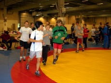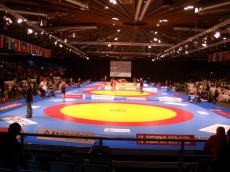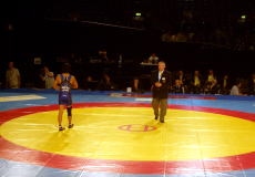 いよいよグレコローマンがスタート。デンマーク、ノルウェー、スウェーデンの男子はレスリングといえばグレコローマン。フリースタイルはあまりやっていません。会場は試合開始前からデンマークと近隣3ヶ国(あとひとつはフィンランド=ここは少しはフリースタイルをやっているもよう)の応援団で異様なムード。