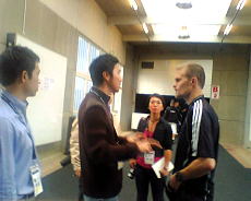 東京スポーツの中村亜希子記者は、やや遅れて到着。いつものところからバスがいっこうに出なかったので、オーストラリアのコーチと一緒に、約30分、歩いてきたとか。そのコーチは日本の総合格闘技イベント「バーリ・トゥード・ジャパン」に出たこともあるそうで、国士舘大の朝倉利夫監督がオーストラリアにコーチ留学に行った時のコーチでもあるそうだ。