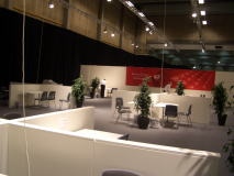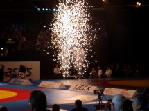 記者席の前はディナー席。調べたところ、1ブース5000ユーロ-(約65万円=7日間)で売り出しているそうだ。最近では野球場にもディナー席がある場合もあり、収入確保という点では反対しないけど、記者席や応援席の前につくらなくてもいいだろう…。野球場はたいてい一番後ろだ。選手を必死になって応援し、試合のもようをレポートする人間より、金持ちを優遇するわけね。世間だけでなく、レスリングの会場でも私たち記者は肩身の狭い思いをしなければならないのだろうか(共同、読売、朝日、東京スポーツなど一部の記者を除く)。