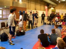 この大会と並行して午前中に地元の若い選手を集めたユースキャンプという一種のレスリング教室が毎日行われている。昨秋の東京での世界選手権でも、試合の合間にちびっ子レスリング教室が行われたが、それと同じような試み。世界選手権を観戦させるだけではなく、ふだんは接することのできない一流選手から指導をうけさせようという試みだ。