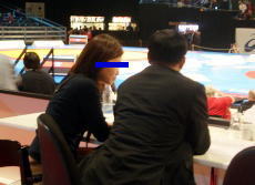 試合が始まると、本ブログの人気者となり、「早く顔出ししろ」とあちこちから要望されている東京スポーツの中村亜希子記者が一大ピンチに! 坂本真喜子選手の取材のあと、携帯電話が見当たらなくなったのです。記者席の上や下、かばんの中を探しても見つからない。記者席は仮設スタンドにあるので、その下に落ちたのではないかと、やぐらの下までも探しにいったけどない。取材で通った場所、日本コーチ陣と話した場所、キャンディを買った売店…筆者も一緒になって追跡。