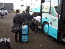 中村記者の姿はなかった^^; 傷心の思いでチームのバスへ。どこかの観光客一行が、何かの手違いでバスが来ていないので、乗せてくれと頼んでききたらしい。大型バスで席が空いていることもあり、運転手もそれを受け入れた。人がよすぎるように思えるが、田舎の空港で他に足がなさそう。時間も時間だし、それが人間味ってものかな。そのため、やや遠回りで時間をくってしまい、ホテル着が夜12時すぎ。