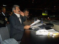 大会も中日。この日は女子だけだから、イランの記者はホリデー。前日は記者席の私の隣にはイランのラジオのアナウンサーが陣取り、携帯電話からの小型マイクに向かってしゃべりまくっていた。携帯電話の発達で、ラジオ局もコンパクト化している。通信・新聞社だって同じ。23年前に初めてハンガリーの世界選手権を取材した時は、記事を送る特殊な送信機を持たされれた。カメラマンは重たい現像機と電送機を持たされて大変な時代だった。