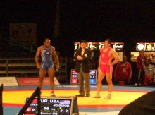 それにしても、会場のムードは異様だ。グレコローマンって人気があるんですね。試合前、米国の記者がパソコンを持って日本記者の席にやってきて、動画を見せてくれた。23日に女子の栄監督が指導したユースキャンプのもようで、これをネットにアップしたところ、非常に好評で、「ためになった」というメールが1万通(のわけない)も送られてきたそうだ。