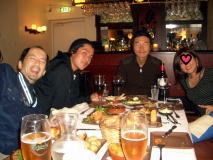 そのおかけで、9時半には保高記者も含めて執筆がほぼ終了。大会が始まってから1回も街へ食事に行っていないので、矢吹カメラマンとともに街へ(保高記者、ビル・メイさんは他の用事のため不参加)。東京スポーツの中村記者、菊池カメラマン、共同通信の戸部記者と合流し、最初で最後(だろう)の晩さん会。