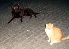 帰路のタクシーを探しにスカンジナビア・ホテルへ来たら、FILAのマルティニティ会長にばったり。 | 選手宿舎で飼っている犬と猫、仲良く共存していました。 |