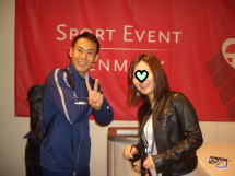 | 金メダルの吉田沙保里選手と記念撮影する日テレ・濱本さん。公私混同ではいか?(筆者もやったことあります) | 「アー・ユー、モントリオール・ゴールドメダリスト?」と聞かれ、サインを求められた高田裕司専務理事。 | 翌日に帰国する福田会長のゲキ。福田会長は新潟国体のあと、IOC総会のため、またデンマークに戻ってきます。 |