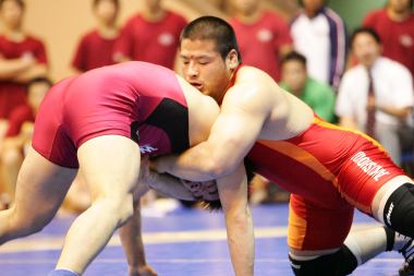 拓 大(赤) ○[4−3]● 早 大(エンジ) 96kg級 : 藤本健治(拓大)○[2−0(1-0,1-0)]●武富隆(早大) 拓大の主将、藤本が接戦をものにして優勝を決める。