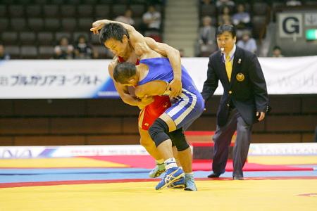 【フリースタイル55kg級決勝】 湯元進一(自衛隊=赤)○[2−1(3-5,2-1,1-0=2:04)]●田岡秀規(自衛隊) 同門対決。第3ピリオドのクリンチで防御をしいられた湯元が起死回生の逆転勝ち。