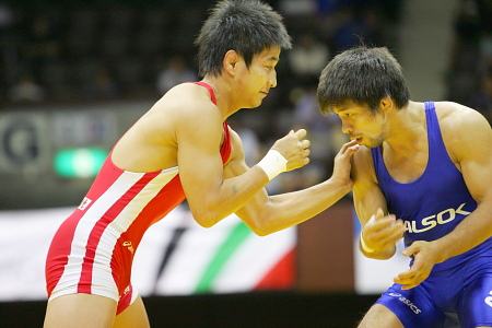 【グレコローマン60kg級決勝】 松本隆太郎(群馬ヤクルト販売=赤)○[2−1(2-0,0-2,2-0)]●笹本睦(ALSOK綜合警備保障) かつて全日本選手権決勝で優勝を争った両者。松本が笹本越えを果たした。 この後、佐藤亮太とのプレーオフへ。